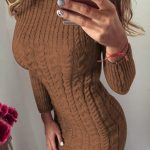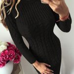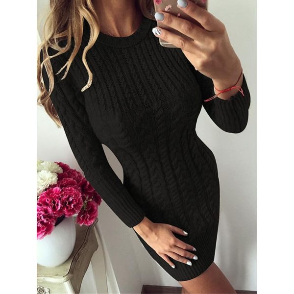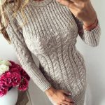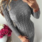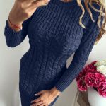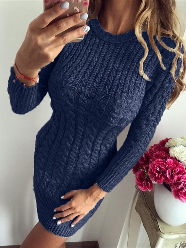Cable Knit Crew Neck Sweater Dress Silver & Light Blue Hollow Out