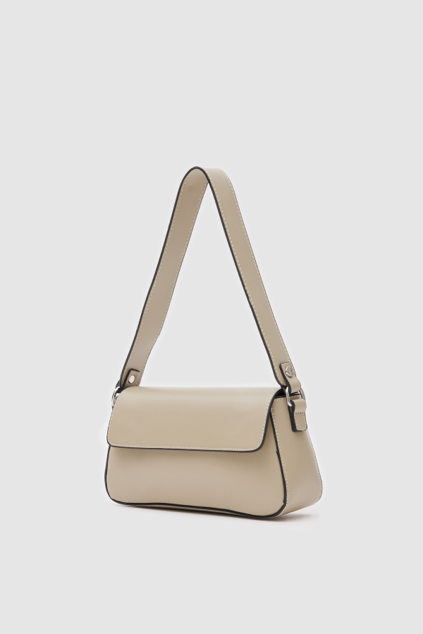 Chic Beige Faux Leather Shoulder Bag