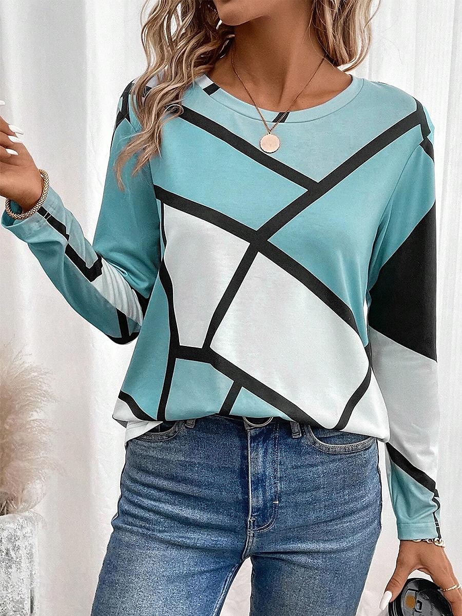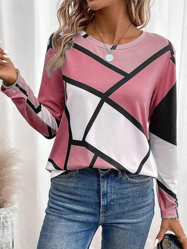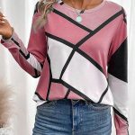 Color Block Casual Long Sleeve Tee