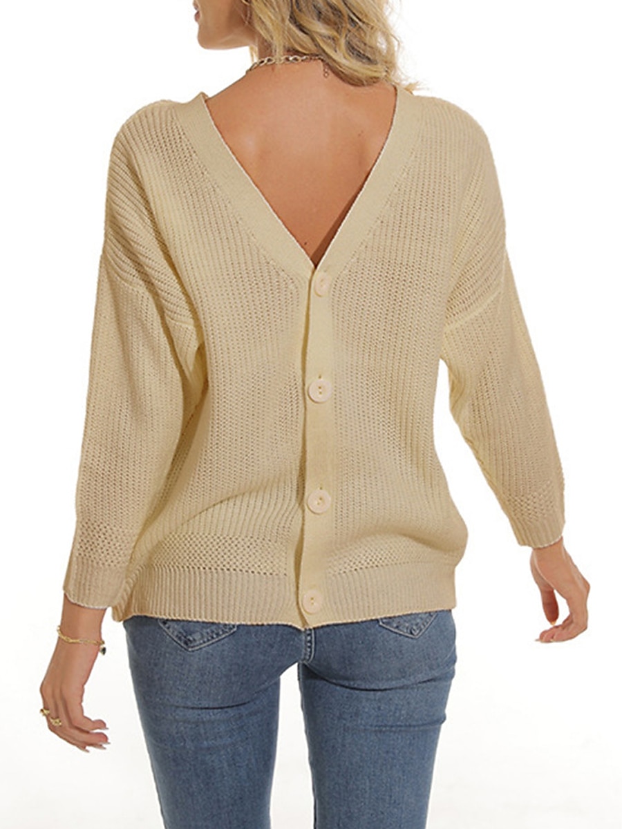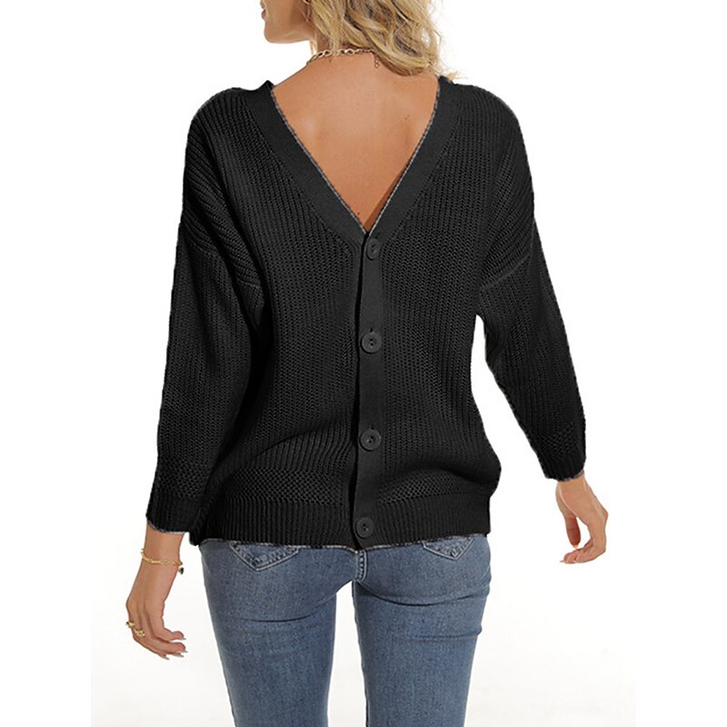 Crew Neck Ribbed Knit Cardigan Black & White Button-Up Knitwear