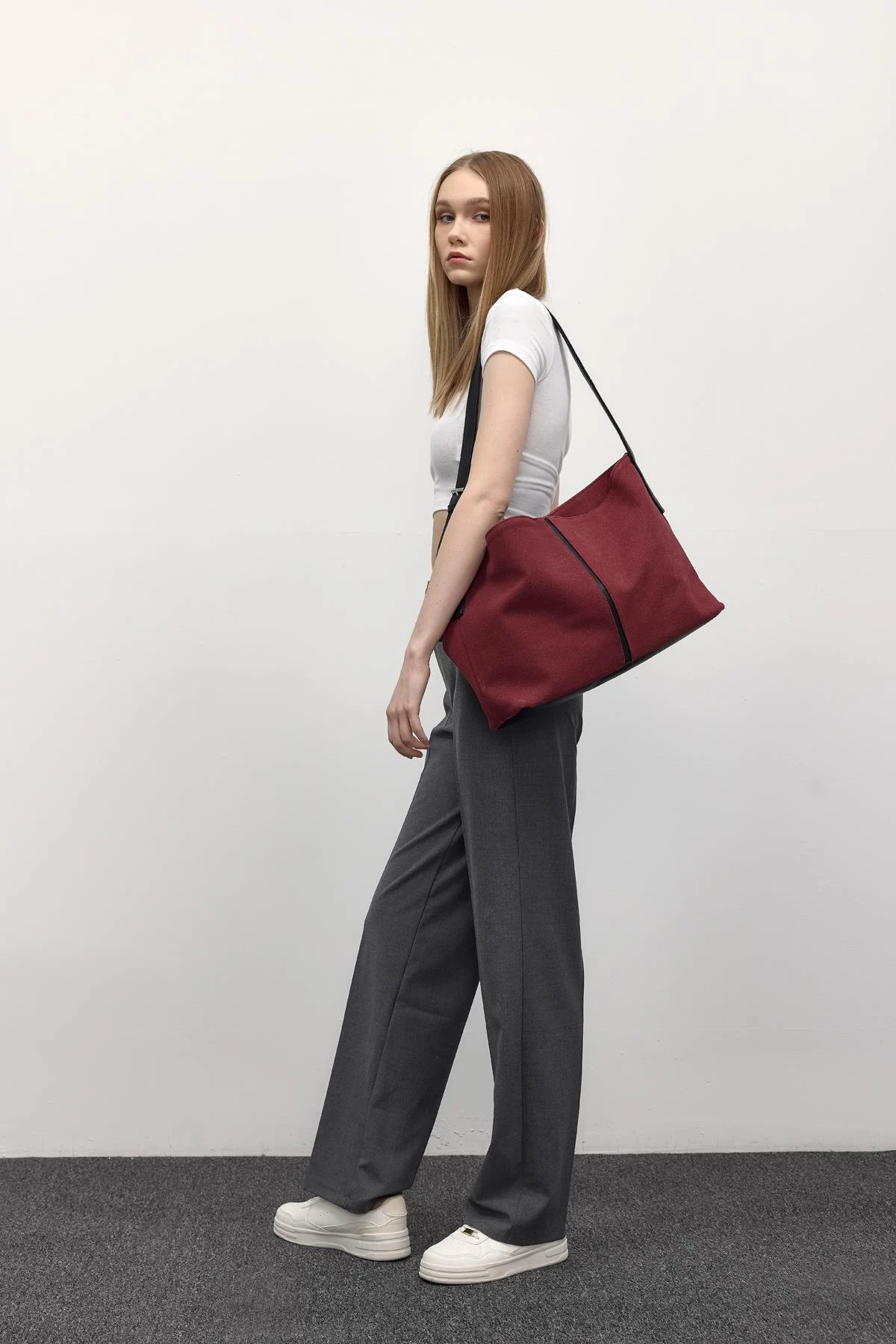 Elegant Maroon Canvas Shoulder Bag