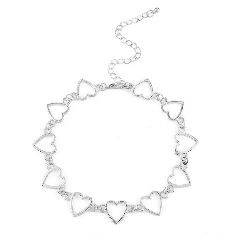 This delicate choker necklace is designed with a series of interconnected heart-shaped links, creating a charming and elegant accessory that adds a playful yet sophisticated touch to any outfit.