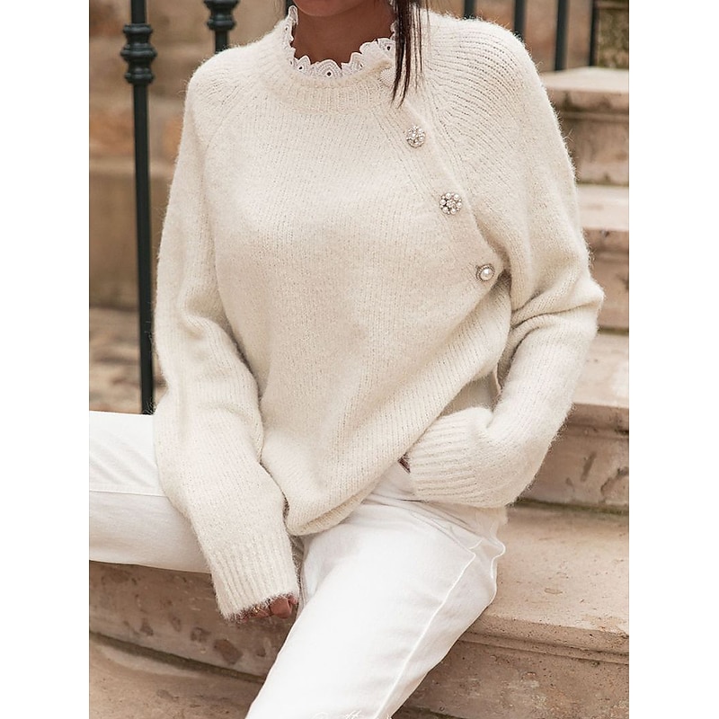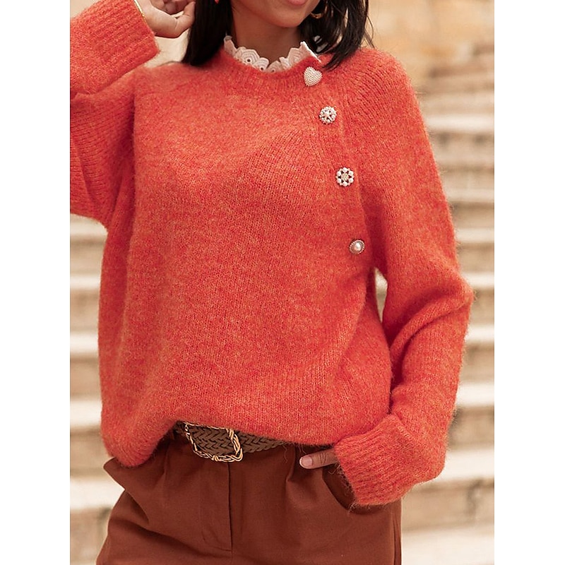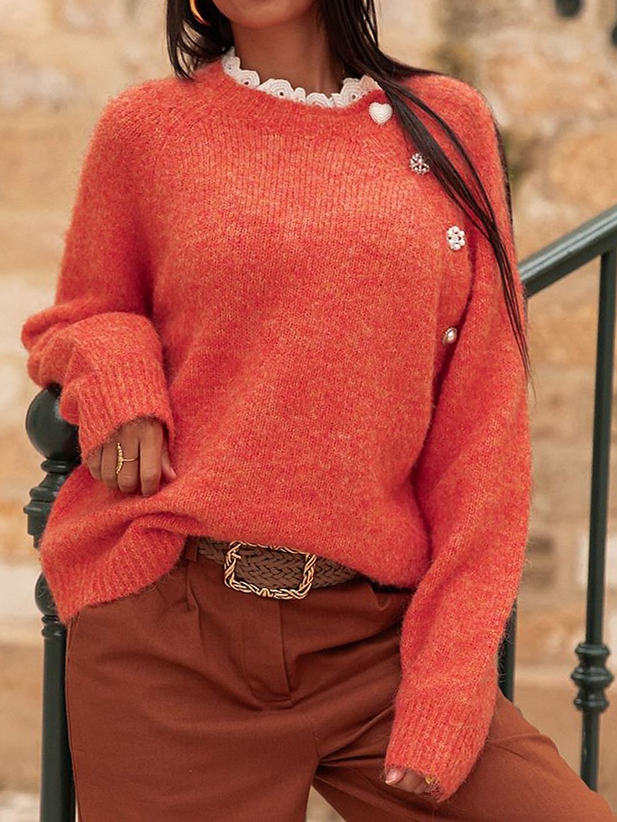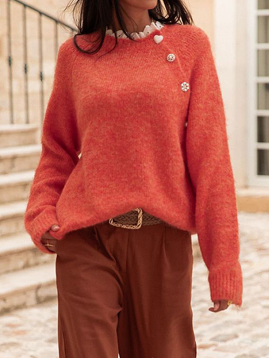 Fuzzy Knit Oversized Sweater Pearl Orange & Beige Holiday Style