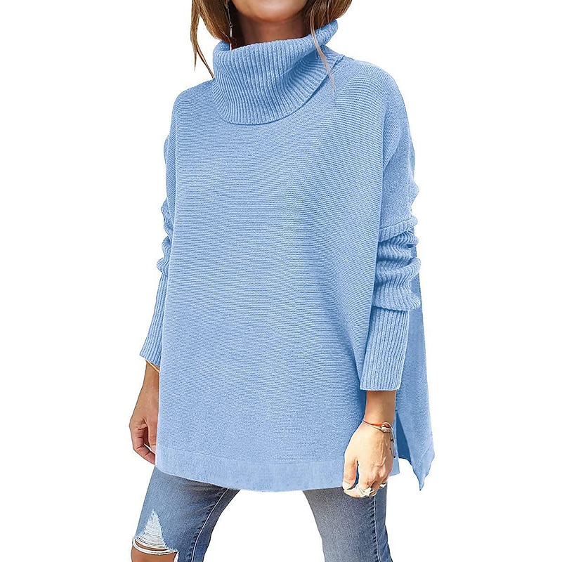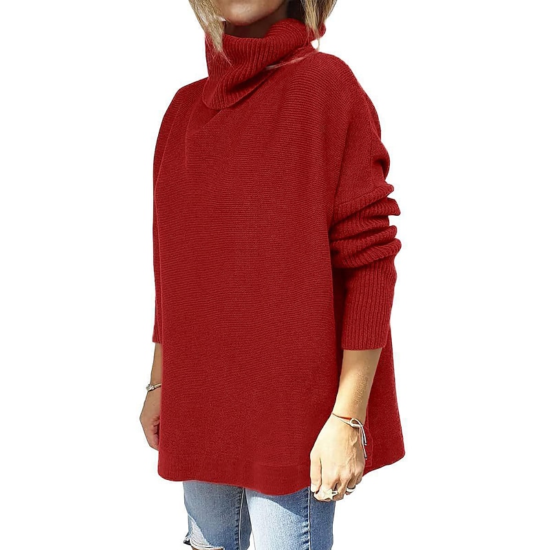 Oversized Turtleneck Sweater Claret & Olive Green Daily Knitwear