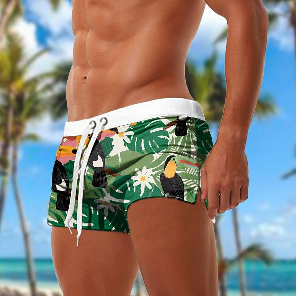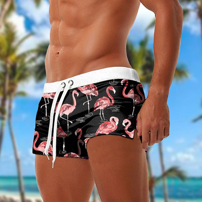 Swim Shorts with Flamingo Print, Elastic Waist, Breathable Comfort
